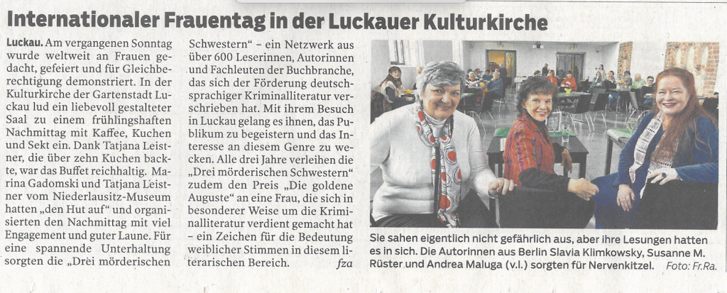 „Wir morden gemeinnützig“ ein Interview der MOZ mit den „Mörderischen Schwestern“ und ihrer Berliner Sprecherin Susanne Rüster (15.03.2024).